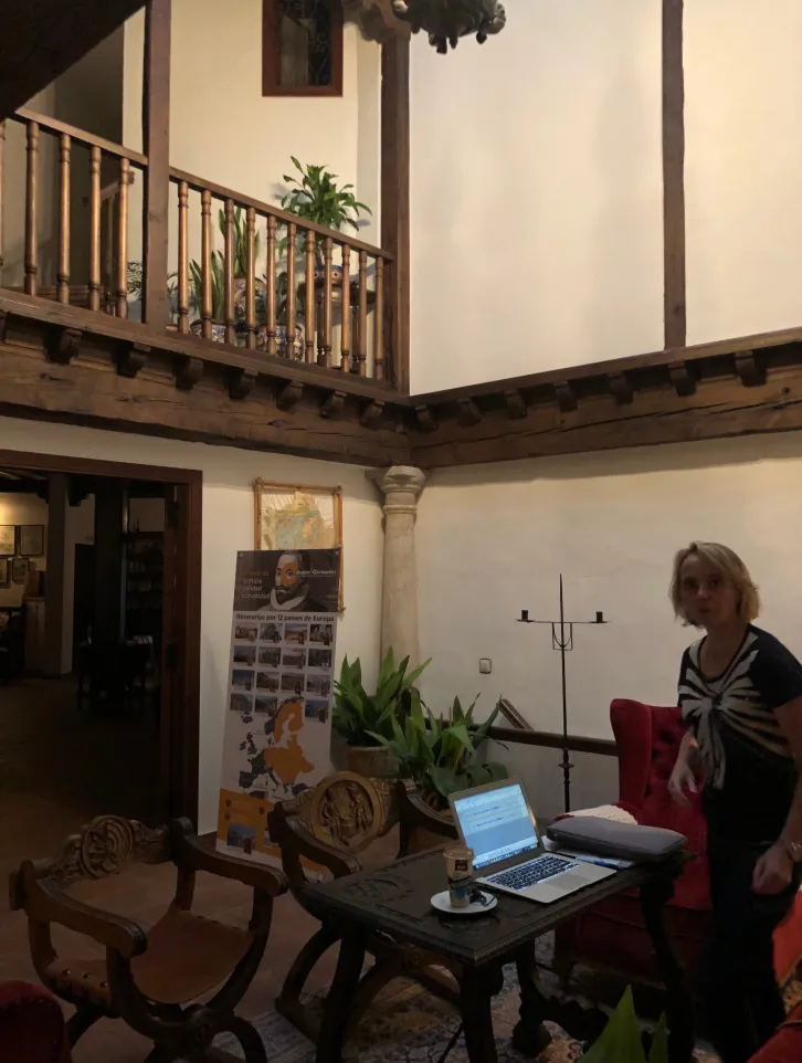 Después de la entrevista nos alojamos en una interesante casa histórica de finales del siglo XVI “Casa de la Torre”, en el pueblo del Toboso. Allí rodeados de una inspiradora atmósfera, revisamos la entrevista y las fotografías realizadas.
